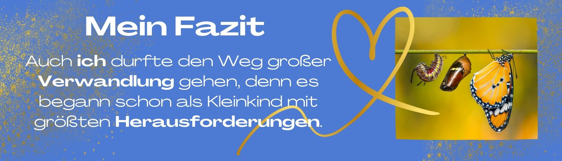 Im Laufe der Zeit als erwachsene Frau lernte ich, das die größten Bürden meines Leben immer auch meine größten Chancen waren und das alle meine Konfliktituationen in den Prozessen zu meinen verborgenden Potenzialen führten.